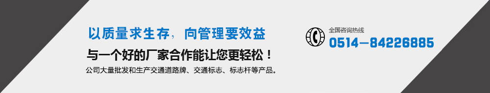 揚州市宏順光電器材有限公司近年來在國內眾多交通標牌生產廠家的競爭中得以生存、發展,是歸于各新老用戶及各界朋友的厚愛和支持。我們全體員工向你們致以誠摯的感謝。 為使我們共同步入新世紀,提高我們的產品質量與服務希望對我們提出寶貴的意見,使我們不斷改進、創新。 我們將和過去一樣,視今天的質量為明天的市場。為您奉獻滿意的各種精品,為美化我們的交通事業做出貢獻。 公司主要大量批發和生產道路交通標志牌、道路指示牌、交通標志牌、指路牌、反光標志牌等產品。技術人員與職工60多人,為交通行業、機械行業、配套標牌重點生產企業。 長期以來我公司一直注重產品質量,堅持“質量是企業生命”的宗旨,由于質量可靠,價格合理,服務周到,從而贏得廣泛的市場,近年來隨著交通事業的開發和研究,傾聽用戶的意見,使得我們在市場競爭中不斷發展壯大。 我們本著“質量可靠、信譽優先、用戶至上”的宗旨,“以質量求生存,向管理要效益”的信條,竭誠為... ...【查看更多】